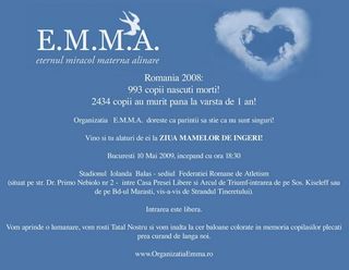 Organizatia E.M.M.A. doreste ca parintii sa stie ca nu sunt singuri. Duminica, pe 10 mai fii alaturi de ei la Ziua Mamelor de Ingeri, eveniment care va consta in aprinderea de lumanari, rostirea rugaciunii Tatal Nostru si inaltarea la cer a unor baloane colorate in memoria copilasilor plecati prea curand dintre noi.